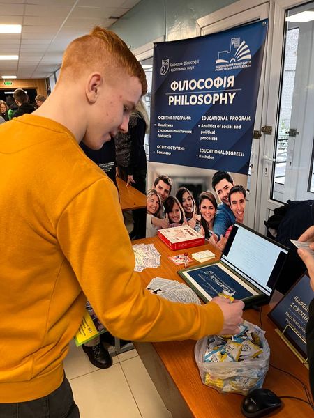 Студенти грали з майбутніми абітурієнтами в інтерактивну гру та ознайомили старшокласників з освітньою програмою “Аналітика суспільно-політичних процесів” спеціальності “Філософія”.