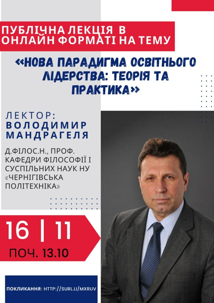 Публічна лекція в онлайн форматі на тему ” Нова парадигма освітнього лідерства: теорія та практика”