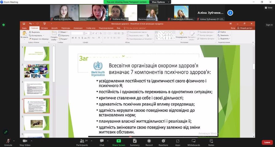 Сьогодні 1 березня 2024 року відбулася перша онлайн-сесія з теми проблем ментального здоров’я та протидії цьому.