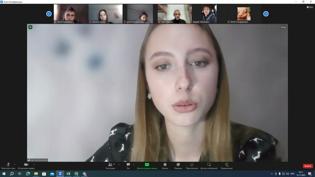 В межах відзначення Всесвітнього дня філософії – World Philosophy Day, який проголошено ЮНЕСКО у 2005 р. і щорічно святкується у третій четвер листопада, кафедрою філософії і суспільних наук було зініційовано низку заходів. Першим із таких, 13 листопада, було онлайн засідання філософської секції наукового гуртка «Аналітичний простір», на початку якого модераторка і керівниця гуртка, доцент кафедри Світлана Киселиця розповіла про двадцятилітню історію та плідні результати науково-дослідницької роботи гуртківців. Інтелектуально змістовні та яскраво візуалізовані доповіді здобувачів вищої освіти бакалаврату й аспірантури Каріни Коваленко «Ставлення української молоді до волонтерської діяльності: проблеми і досягнення», Євгена Патланя «DevOps and Philosophy», Василя Раскіна «Світоглядний двобій Давида і Голіафа» викликали щирий інтерес і жваву дискусію. Серед тих, хто завітав на «філософський вогник» були люди різного віку й світоглядно-теоретичних орієнтирів, студенти й викладачі, представники владВ межах відзначення Всесвітнього дня філософії – World Philosophy Day, який проголошено ЮНЕСКО у 2005 р. і щорічно святкується у третій четвер листопада, кафедрою філософії і суспільних наук було зініційовано низку заходів. Першим із таких, 13 листопада, було онлайн засідання філософської секції наукового гуртка «Аналітичний простір», на початку якого модераторка і керівниця гуртка, доцент кафедри Світлана Киселиця розповіла про двадцятилітню історію та плідні результати науково-дослідницької роботи гуртківців. Інтелектуально змістовні та яскраво візуалізовані доповіді здобувачів вищої освіти бакалаврату й аспірантури Каріни Коваленко «Ставлення української молоді до волонтерської діяльності: проблеми і досягнення», Євгена Патланя «DevOps and Philosophy», Василя Раскіна «Світоглядний двобій Давида і Голіафа» викликали щирий інтерес і жваву дискусію. Серед тих, хто завітав на «філософський вогник» були люди різного віку й світоглядно-теоретичних орієнтирів, студенти й викладачі, представники влади й «випадкові перехожі»… В кращих традиціях вільнодумства й демократичного полілогу присутні змогли в черговий раз переконатися, що Філософія об’єднує!