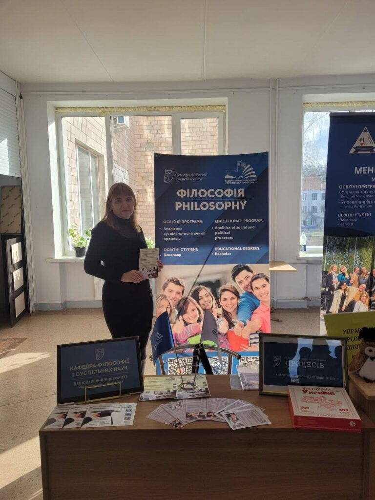 6 лютого викладачі кафедри філософії і суспільних наук провели профорієнтаційний захід для старшокласників з ОТГ Н. Білоус та Киїнка. Під час заходу учні дізналися про освітньо-професійну програму «Аналітика суспільно-політичних процесів» спеціальності «Філософія», ознайомилися з особливостями навчання за цією спеціальністю та перспективами професійного розвитку. Зокрема, зацікавлення викликала можливість проходження аналітичної практики в органах державної влади, участь в академічних обмінах, цікавих заходах і конкурсах.