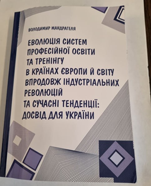 5 грудня 2023 р. в Президії Академії педагогічних наук України відбулася презентація монографії професора кафедри філософії і суспільних наук НУ «Чернігівська політехніка» д.філос. н., проф. Мандрагелі В.А. «Еволюція систем професійної освіти та тренінгу в країнах Європи й світу впродовж індустріальних революцій та сучасні тенденції: досвід для України» (364 с.).