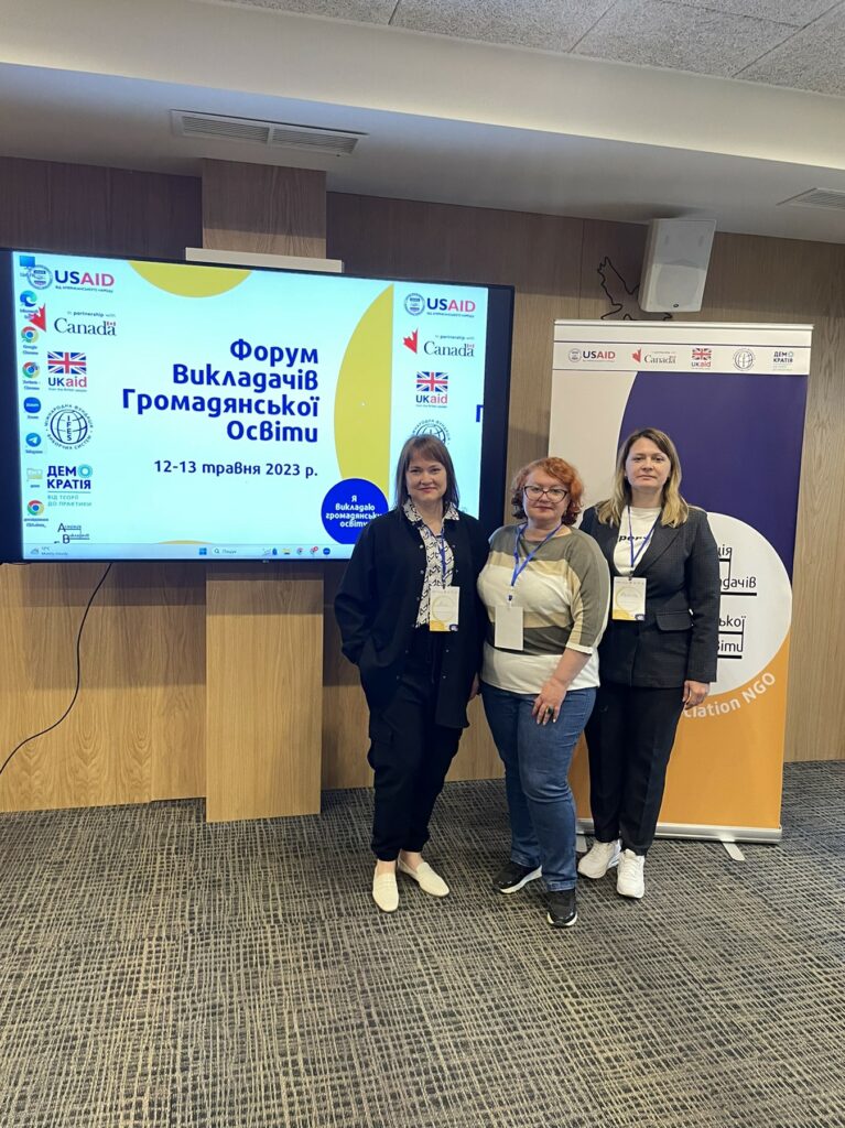 12-13 травня 2023 року викладачка кафедри філософії та суспільних наук Наталія Шакун та викладачки кафедри правоохоронної діяльності та загальноправових дисциплін Олена Козинець і Алла Нітченко та взяли участь у першому Форумі викладачів громадянської освіти.
