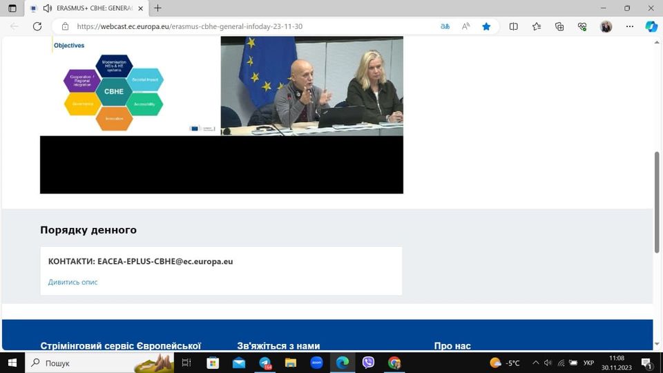 Члени кафедри філософії і суспільних наук НУ «Чернігівська політехніка» за запрошенням European Education and Culture Executive Agency (EACEA) 30 листопада 2023 р. приєднались до Онлайн Інформаційної сесії Програми ЄС Еразмус+ напряму КА2: Розбудова потенціалу у вищій освіті – Online info session: Erasmus+ programme – Capacity Building in Higher Education (CBHE), яку було присвячено питанням підготовки до участі в конкурсі 2024 року.