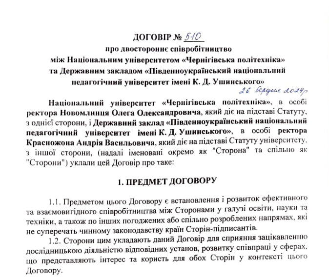 Підписано договір про співпрацю з Південноукраїнським національним педагогічним Університетом імені К.Д.Ушинського