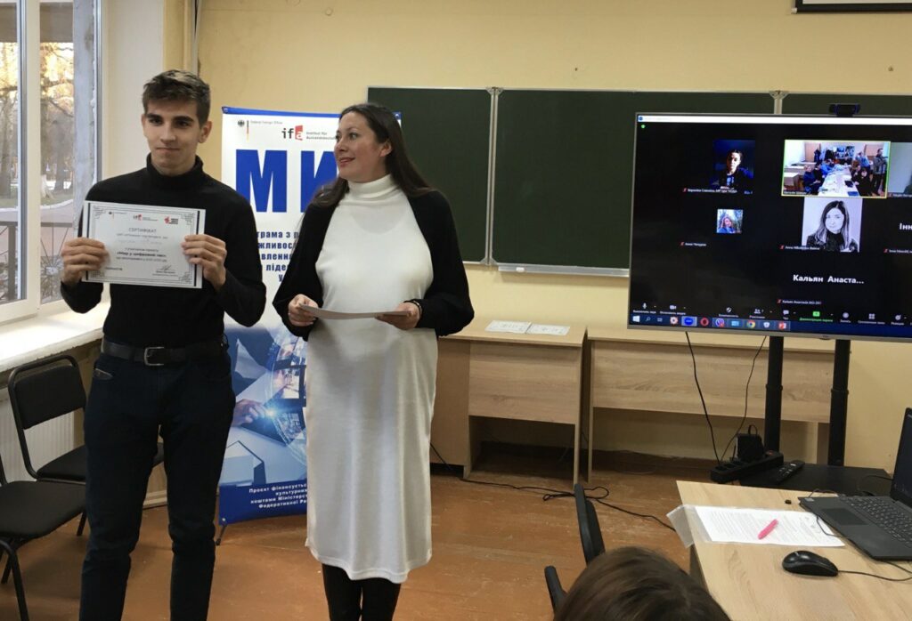 Найактивніші студенти Влада Коваль і Нікіта Стрелок отримали сетртифікати учасників проєкту “Мир у цифровий час”.