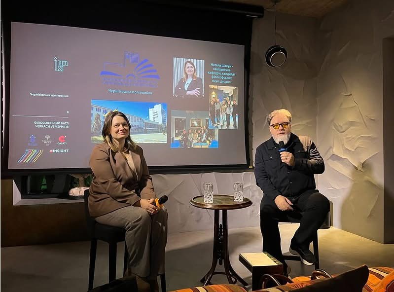 В умовах демократичного суспільства зростає соціальний запит на гуманітарне знання та нові форми його інституціалізації. У цьому сенсі публічні змагання є особливою формою філософських практик, спрямованих на поширення філософії широкому загалу.Саме в такому форматі – форматі публічного діалогу – 7 лютого 2025 р. у арт-просторі «MORRIS-SPACE» м. Черкаси відбулась зустріч викладачів та студентів НУ “Чернігівська політехніка” та Черкаського національного університету імені Богдана Хмельницького.