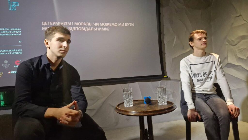 Дискутували на тему детермінізму та свободи вибору. Пара учасників ініціювала обговорення окремої проблеми: