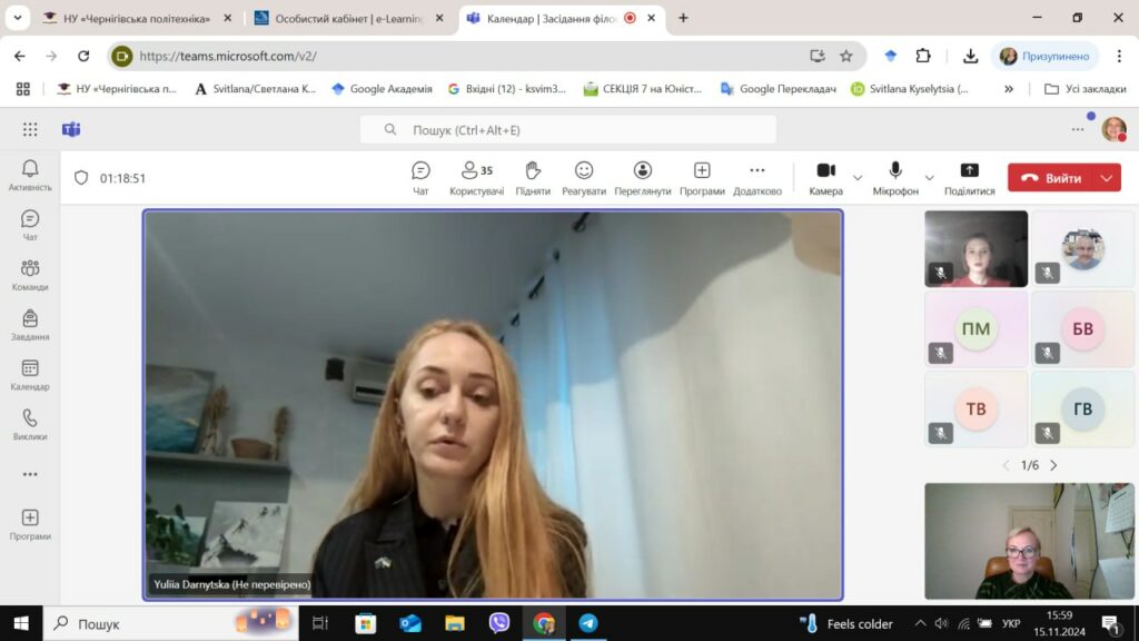 В межах відзначення Всесвітнього дня філософії 15 листопада відбулося засідання філософської секції наукового гуртка «Аналітичний простір» кафедри філософії і суспільних наук НУ “Чернігівська політехніка”, на яке запросили Юлію Дарницьку, колишню студентку нашого університету , активно діючу депутатку Чернігівської міської ради, радницю в. о. міського голови Чернігова з питань міжнародного співробітництва. Тема аналізу: «Як молодь може впливати на міжнародну політику? Підсилення голосу молодих українців задля підтримки України». Модераторкою обговорення виступила к.філос.н., доц. Світлана Киселиця