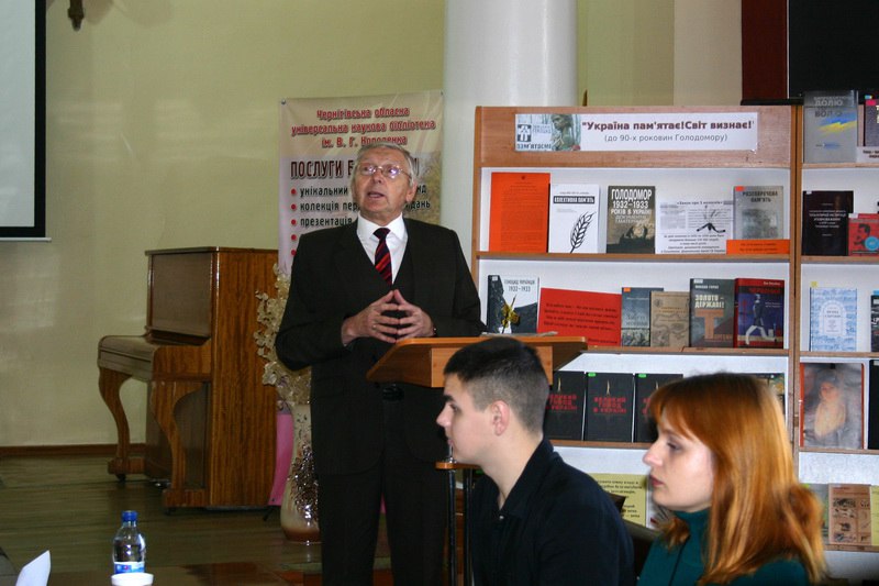 Зі словами шани про загиблих під час геноциду українського народу та пам’яті про трагічну сторінку його історії до учасників заходу звернувся професор кафедри філософії і суспільних наук НУ «Чернігівська політехніка» Олександр Крук.