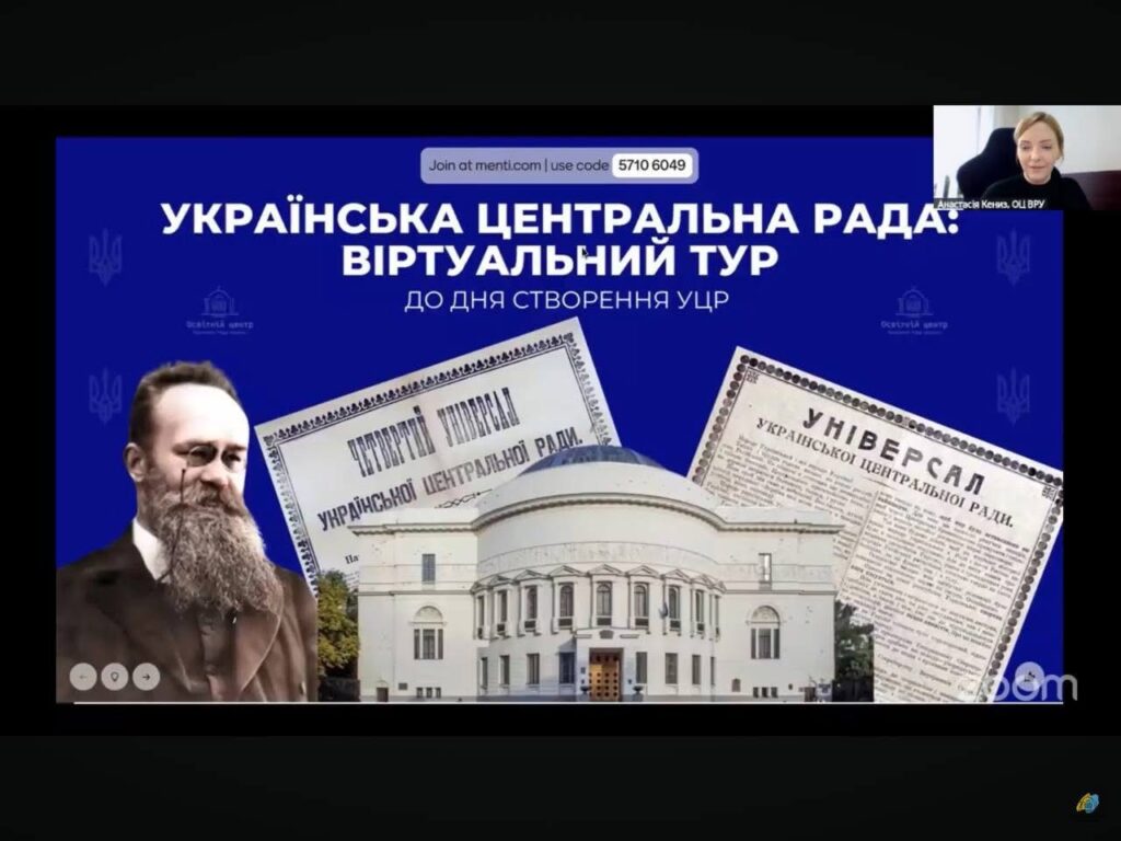 Домашня сторінка › Без категории › Здобувачі освіти спеціальності “Філософія” взяли участь в онлайн-заході, присвяченому річниці створення Української Центральної Ради. Організатором події виступив Освітній центр Верховної Ради України за участі Голови Українського Парламенту Руслана Стефанчука.Завідувач відділу Національного музею історії України Олександр Кучерук провів змістовну лекцію про створення Української Центральної Ради, її засновників, розкривши маловідомі факти з історії першого українського парламенту. Учасники заходу також долучилися до унікального віртуального туру, що провів їх вулицями українського парламентаризму, об’єднавши всю країну в єдину історичну картину становлення державності.На завершення заходу відбулася парламентська вікторина.